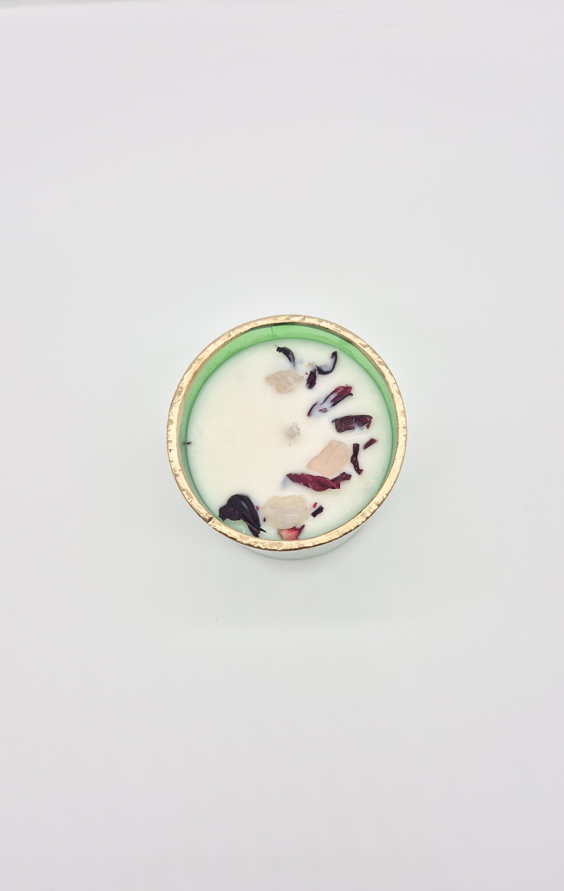 We make our own glass container from recycled glass bottles. Each container is hand painted.
