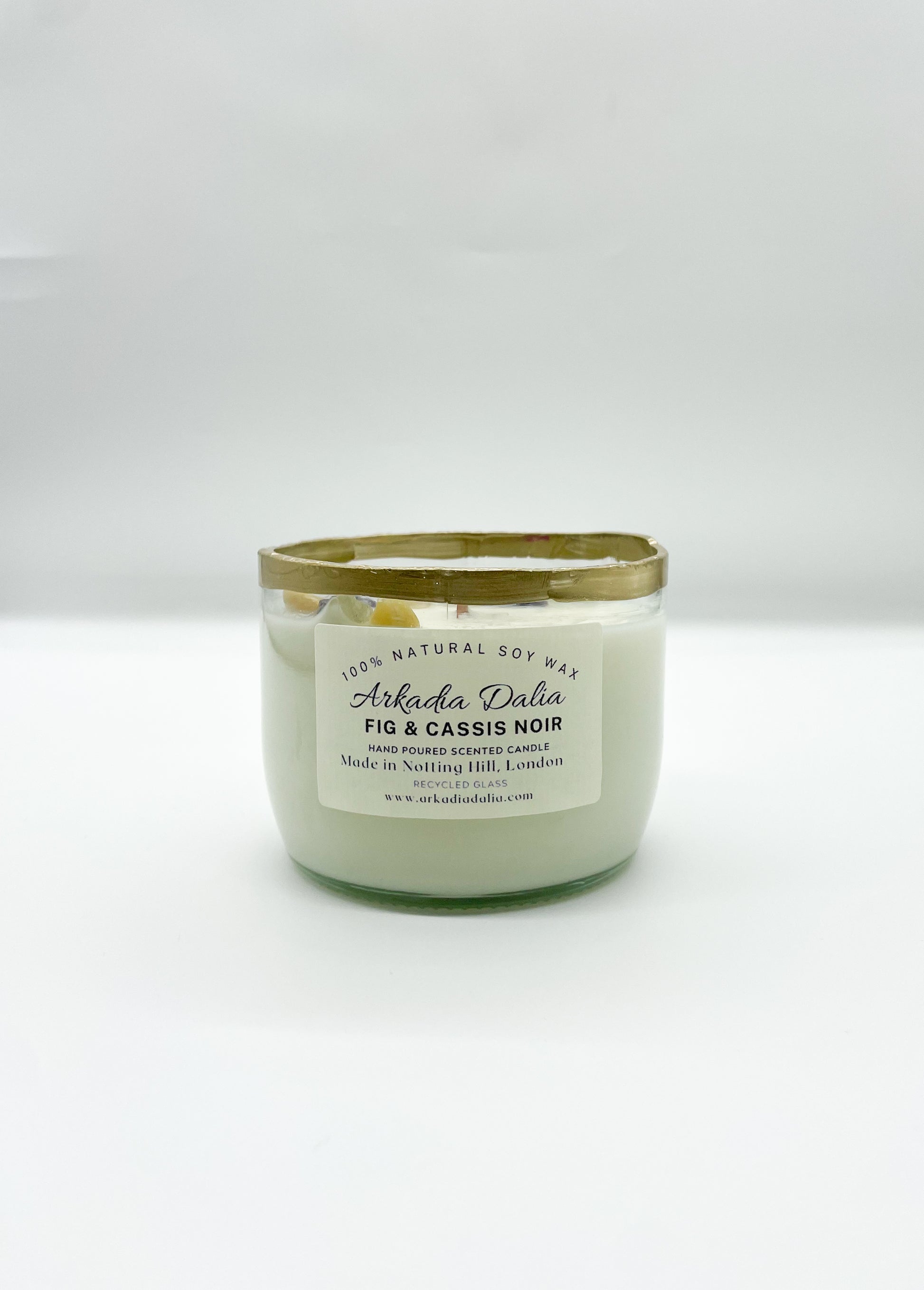 We make our own glass container from recycled glass bottles. Each container is decorated/painted by hand.